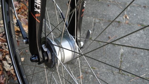 Shimano hub dynamo. It will eventually power my iPad mini while riding.