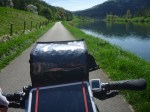 Die Wetterlage hat sich wieder erholt, es scheint die pralle Morgensonne, als ich mich nach der Verabschiedung von meinen lieben Gastgebern aufs Rad schwinge. Die heutige Etappe ist landschaftlich ein Traum. Entlang des Doubs, ein stark mäandernder Fluss, gehts verschnörkselt durch die Franche-Comté, wie das hiesige Département sich nennt. Schön langsam wird alles immer grüner. Die Bäume tragen großteils schon Blätter. Die Wiesen sind saftig und blütengespickt. Störche sind am Fluss unterwegs. Einer begleitet mich sogar ein Stück lang.