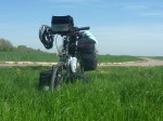 Das erste Mal wild campen, das wollte ich schon lange mal machen. Francis, bei dem ich vor ein paar Tagen genächtigt habe, hat mich dazu ermutigt (“pas de soucis”) und mir auch ein paar Tipps gegeben (entweder in der Nähe eines Wasserhahns zelten oder genügend Wasser in Flaschen abfüllen, ebene Wiese suchen, nicht zu nah bei einer Straße wegen des Lärms, früh abhauen, keinen Müll oder sonstige Spuren hinterlassen). Heute Nacht also ist es so weit: die Tagesetappe hätte ich eigentlich gerne in Seurre beendet, 30 km von Dole entfernt, allerdings hat der dortige Campingplatz geschlossen. Bis Chalon-sur-Saône zu radeln, scheint mir als günstige Option. Ist zwar die doppelte Strecke, aber machbar. Nach 60 Kilometern, die sich heute auf eher schlecht befahrbaren Wegen und in ländlicher Einöde etwas ziehen, gelange ich nach Verdun. Weiter zaht’s mich nicht mehr. Ende Gelände.