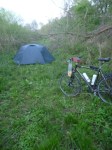 Als ich mein Zelt aufstelle, höre ich im Wald neben mir ständig Schüsse. Sie kommen von fern, und sie hören auch bald wieder auf. Des Nächtens schlafen auch die Jäger, so scheint es. Dafür beginnt dann das Tierkonzert: unglaublich, was Viecher für einen lärm machen müssen, wenn die Luft mal schwarz wird. Die nehmen ja überhaupt keine Rücksicht 😉 das Quaken hunderter Kröten dauert bis morgens an. Nachtaktiv sind außerdem auch Schnecken, übrigens. Ich bekomme davon aber wenig mit, da ich bei Sonnenuntergang schon im Reich der Träume bin. Selten habe ich so gut und fest geschlafen, erstaunlicherweise.